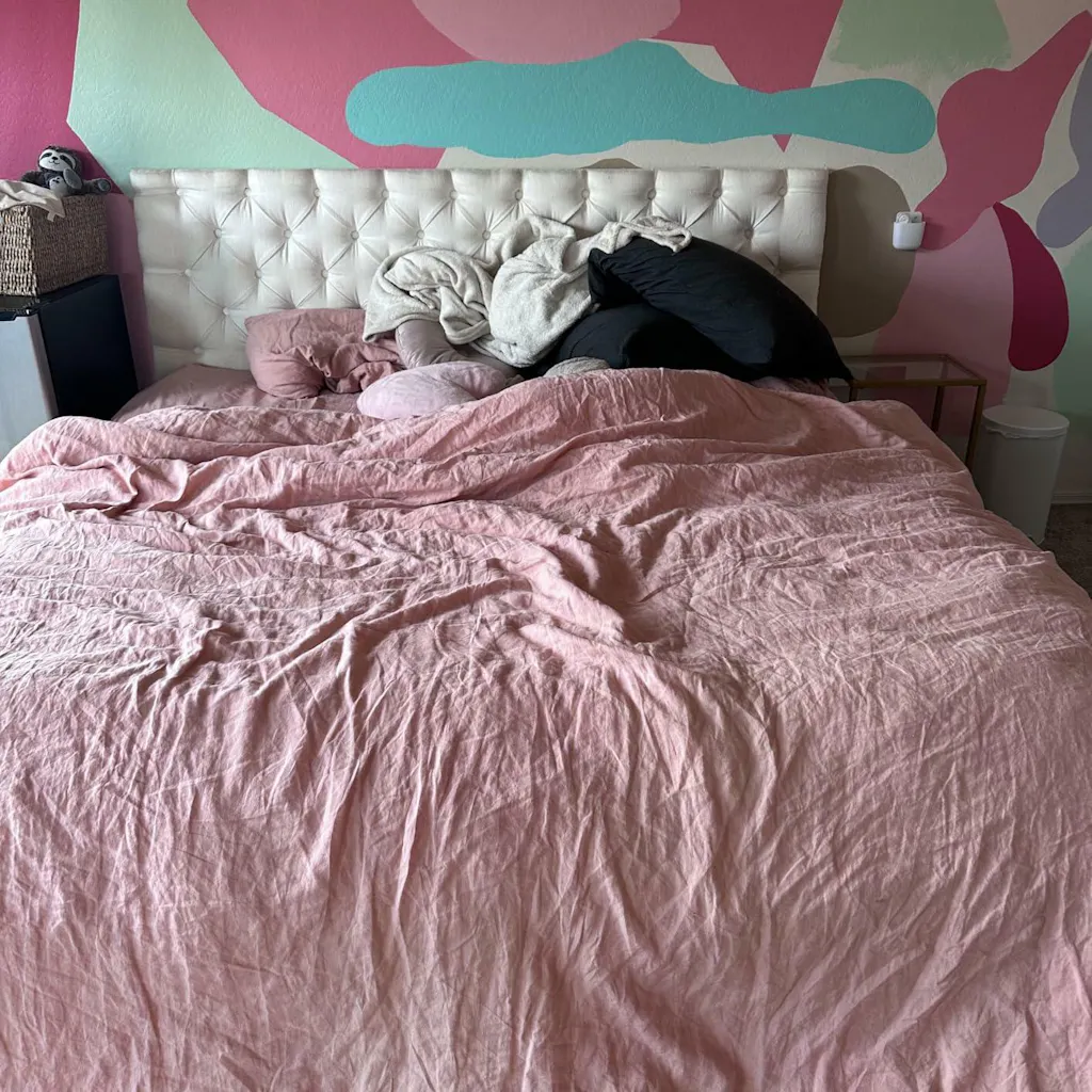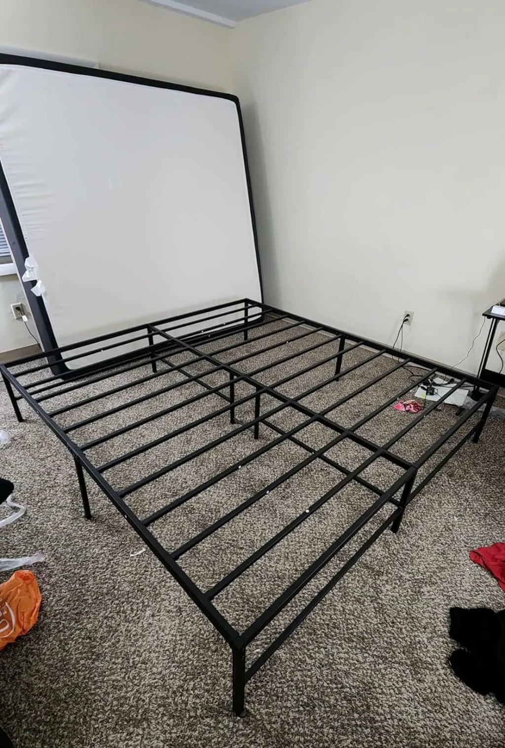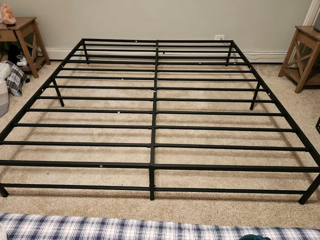 Bought 2 for guest rooms in our vacation home. Saturday. No squeaking with body weight or wiggling. Gray color is great, beige does have a slight pink undertone but blends with neutrals very well! 12” memory form works and clears the gap but 14” is much better. The led charging light is very bright - I would recommend a back pocket off the back to hold phones or a cover flap to the light when not in use. Would give 4.5 or 4.75 rating but otherwise very happy with our purchase.