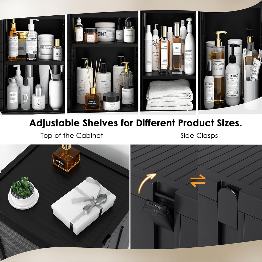 • Waterproof & Dustproof: This plastic storage cabinet features adhesive doors with tough closing to protect items from getting wet. The slim storage cabinet has dust out to keep inside clean