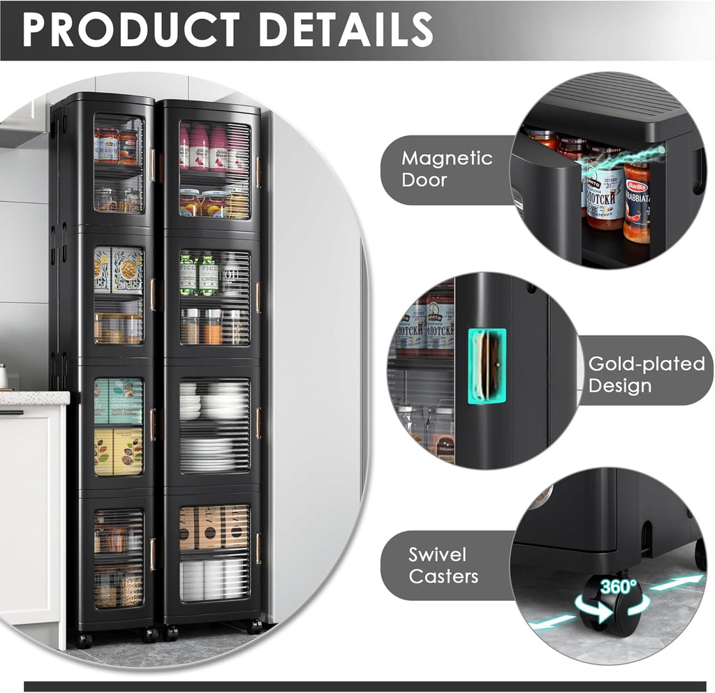 • Easy-access & Move: This narrow storage cabinet with transparent doors allow you to easily see and access items inside. This cabinet comes with removable wheels, allow to easily move