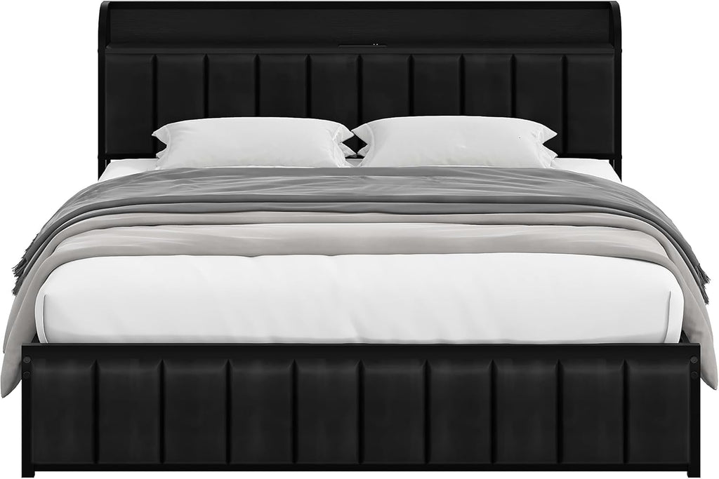 • Comfortable and Stylish - The leather PU and high-resilience memory foam padded headboard provide soft and cozy support while reading in bed. The black PU finish with vertical channel tufting on the headboard and footboard creates a timeless look, perfect for modern bedrooms.