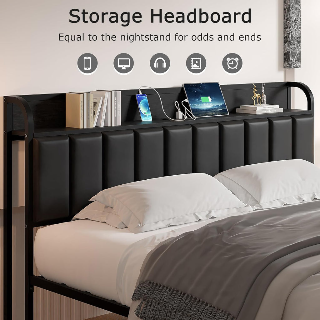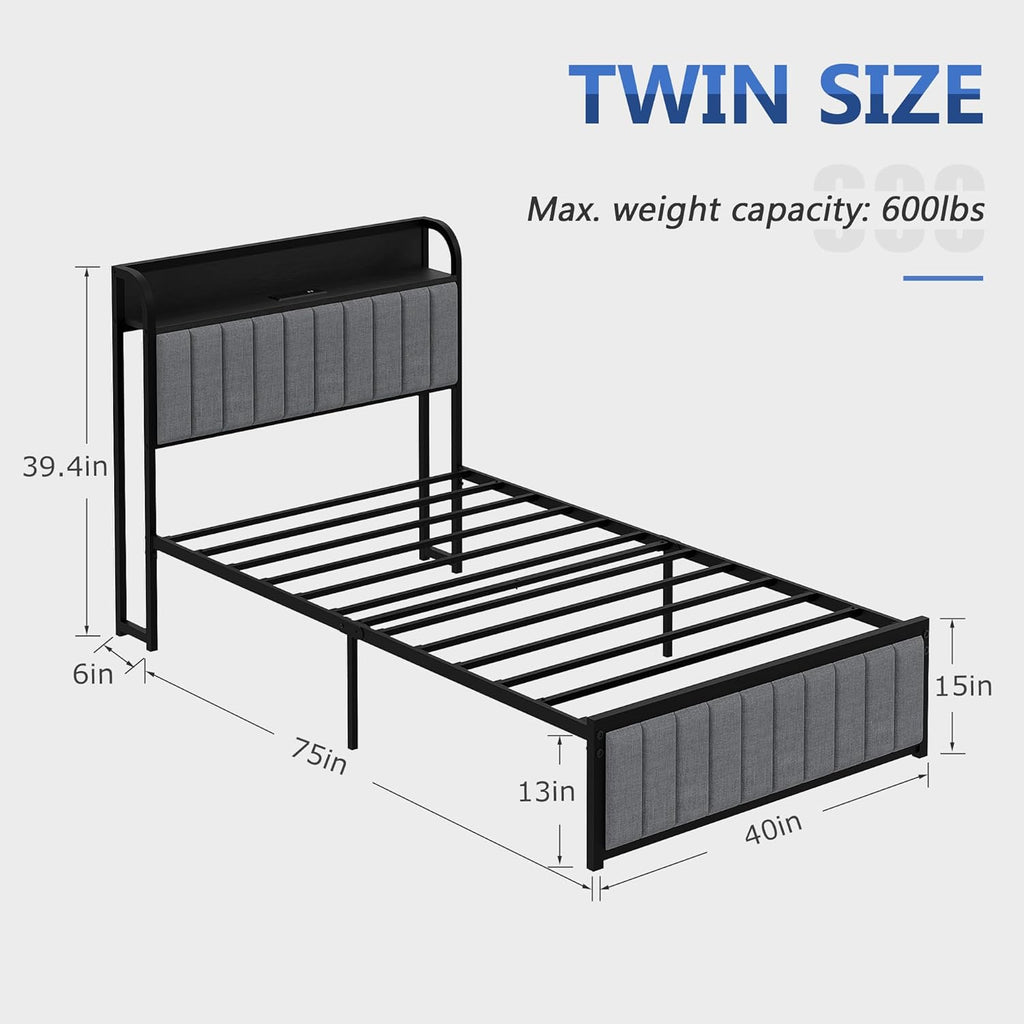 • Multi-Function Storage Space - Enhancing convenience and practicality, the bed frame twin size includes a headboard with 6-inch width shelf that could easily keep small items, like books, phones within easy reach. There is generous 13-inch space under the bed to store shoes and other temporarily unused sundries.