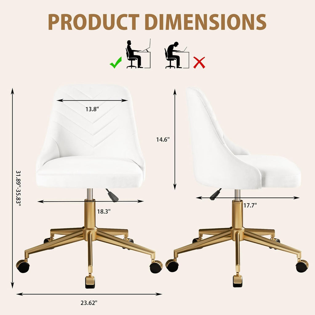 • 【Sturdy and Durable】Designed with durability in mind, this vanity chair features sturdy construction and a reliable gold base. It not only provides solid support, but also gives the whole office chair a noble and elegant look. The base material is strong and durable, allowing for long-term use without warping or loosening