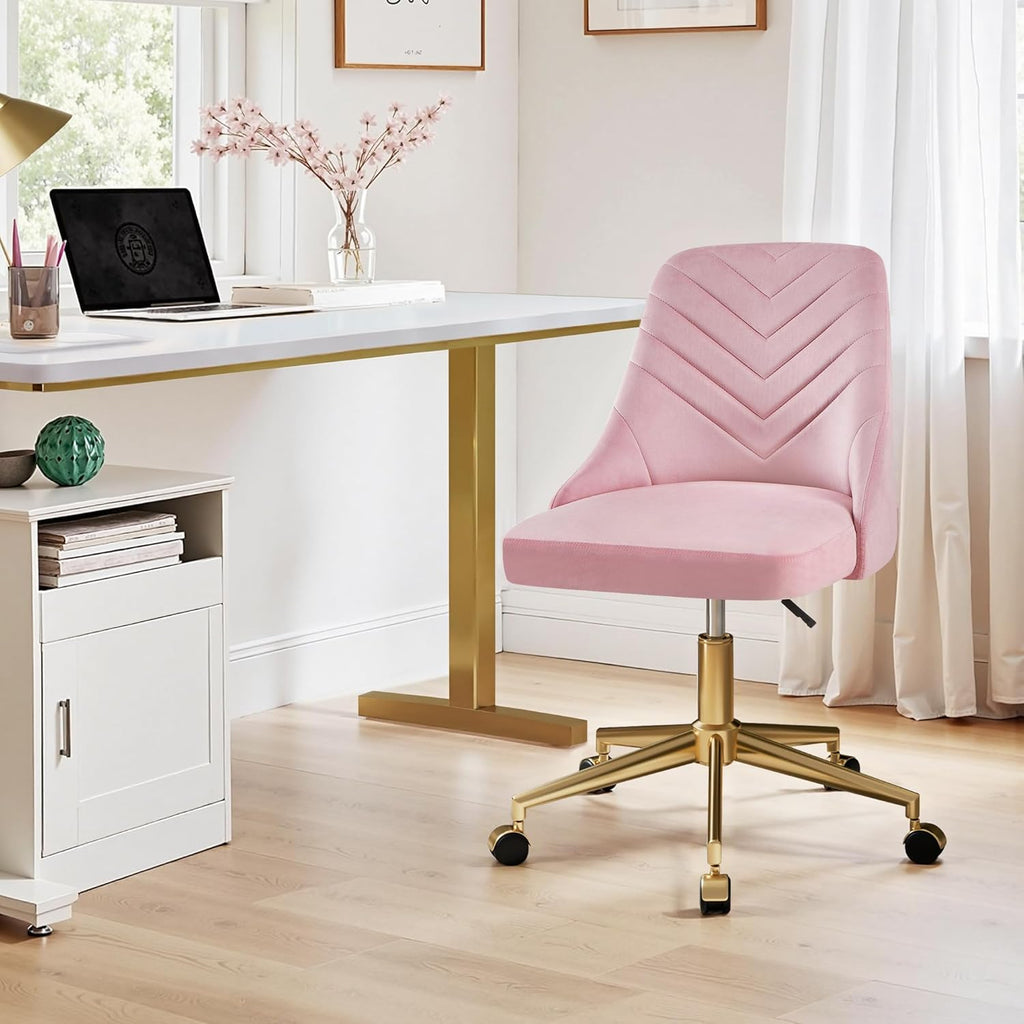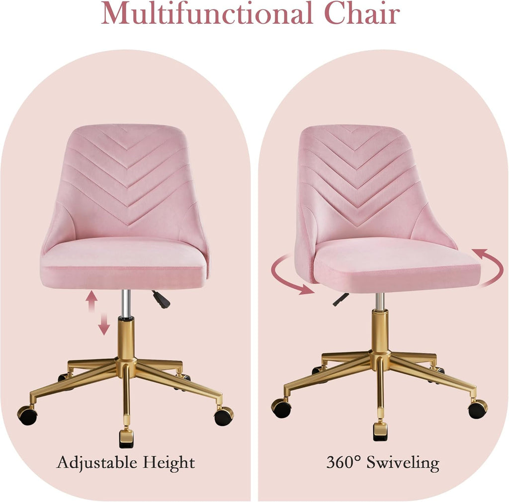 • 【Comfortable & Unique Design】Combined with a beautiful gold metal base, this modern velvet office chair not only provides solid support, but also gives the whole desk chair a noble and elegant look, perfect for your home office, living room, bedroom, or as a Vanity chair for girls and women